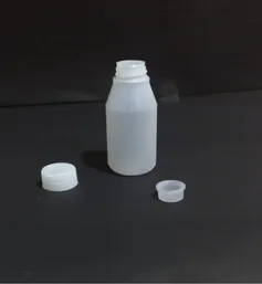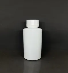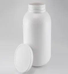 A bottle made from High-Density Polyethylene (HDPE), a tough and flexible plastic often used for packaging liquids, powders, and other materials. HDPE bottles are known for their resistance to impact and chemicals.